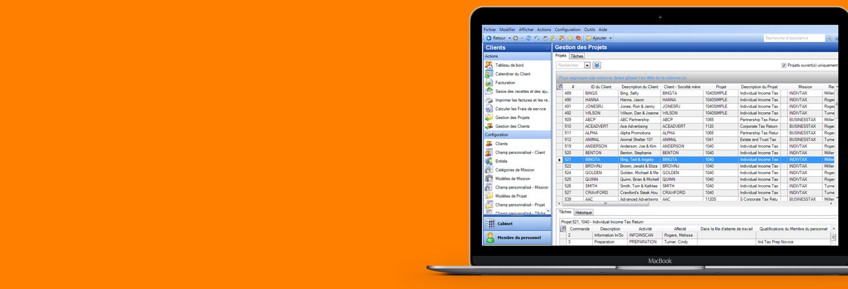 Grâce à ce logiciel de gestion de projet comptable, vous supervisez tous les aspects des projets et des tâches de votre cabinet - en temps réel. Restez informé en tout temps et en parfait contrôle de flux de travail.